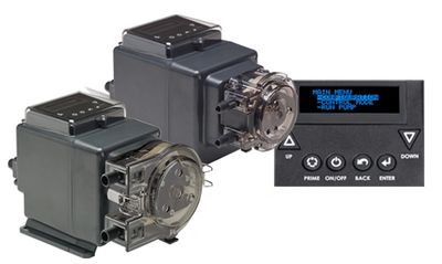 The versatile NEMA 4X motor drive controller may be conveniently mounted directly on the pump or remotely on a wall or panel. One size pumphead accepts six standard tubing sizes. The spring loaded pumphead rollers provide extended tubing life and automatically compensate for minor variations in pump tube wall thickness.